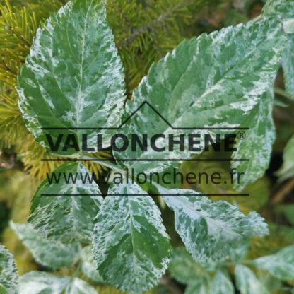 • Feuillage panaché de blanc et vert de SAMBUCUS nigra ‘Pulverulenta’