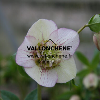 Cette rose de Noël (hellébore) fleurit abondamment. Les fleurs de l’HELLEBORUS x orientalis anemone ‘Picotee’ sont blanches picotées de rose. Les pétales sont semblables celles d’anémones.