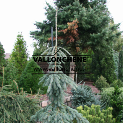 Cette épinette blanche a un feuillage bleuté. Le port du PICEA glauca ‘Pendula’ est érigé avec des branches latérales retombantes.