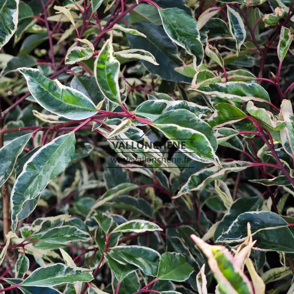 • Feuillage vert bordé de blanc du PRUNUS lusitanica 'Variegata'