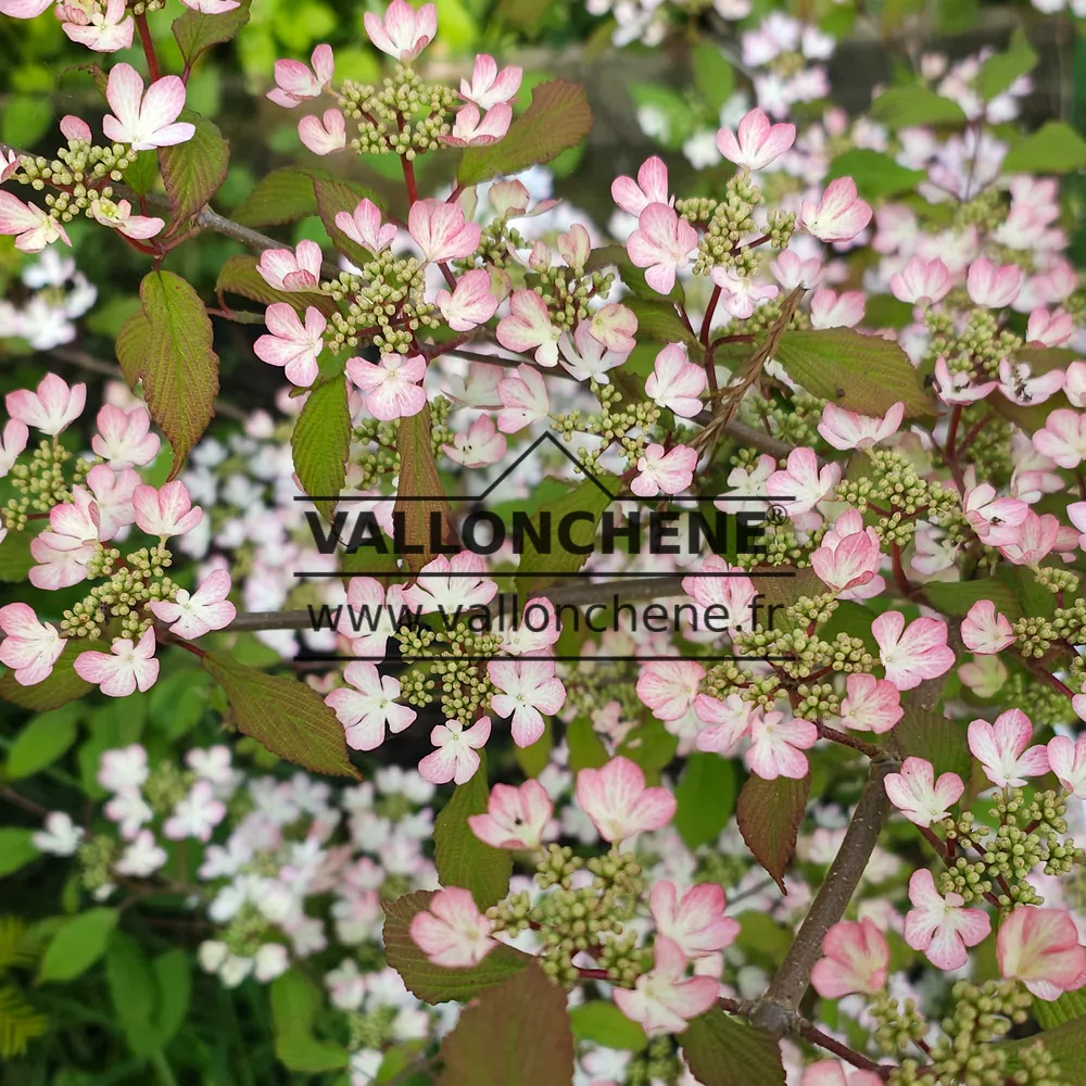 • Fleurs roses du VIBURNUM plicatum 'Molly Schroeder'